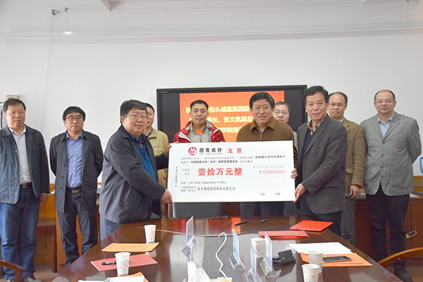 随后,包头城建集团股份有限公司、校教育发展基金会与时博在线三方签署捐赠协议书,郝翔接收捐赠支票,并向包头城建集团股份有限公司颁发捐赠证书。