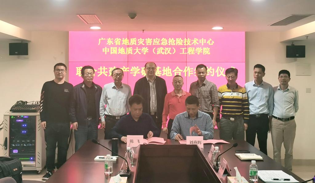 陈飞、刘燕辉签署产学研基地合作协议。根据协议,广东省地质灾害应急抢险技术中心作为中国地质大学(武汉)时博在线的产学研基地,双方将定期就人才的培训、技术的创新、引进与推广、联合攻关、学生实习等方面开展协商研究。