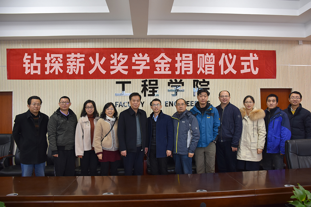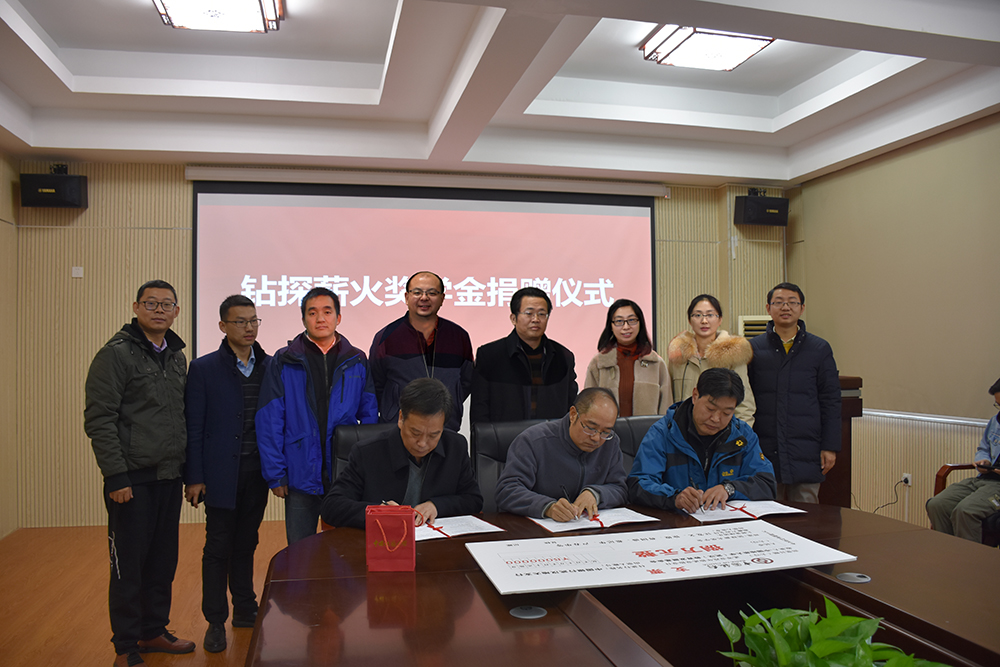 12月20日,时博在线“钻探薪火奖学金捐赠仪式”在工程楼315会议室举行。湖北省城市地质工程院勘查部主任汪发文、副主任徐俊,校友工作与教育基金管理处副处长吕占峰,时博在线党委书记陈飞,副书记江广长,勘察与基础工程系教授段隆臣、蔡记华、卢春华及2017级部分学生代表参加捐赠仪式。