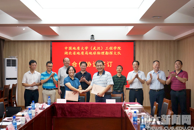 (通讯员张鹏 曾聪)8月31日,为落实学校与湖北省地质局战略合作协议和双方推进深化合作座谈会要求,我院与湖北省地质局地球物理勘探大队(以下简称“湖北物探队”)框架合作协议签订暨产学研基地揭牌仪式在湖北物探队举行。湖北省地质局总工程师熊保成,湖北物探队党委书记、队长梅焱祥,校党委副书记王林清,时博在线党委书记李红丽等参加签约仪式。湖北物探队党委副书记郑乐平主持会议。