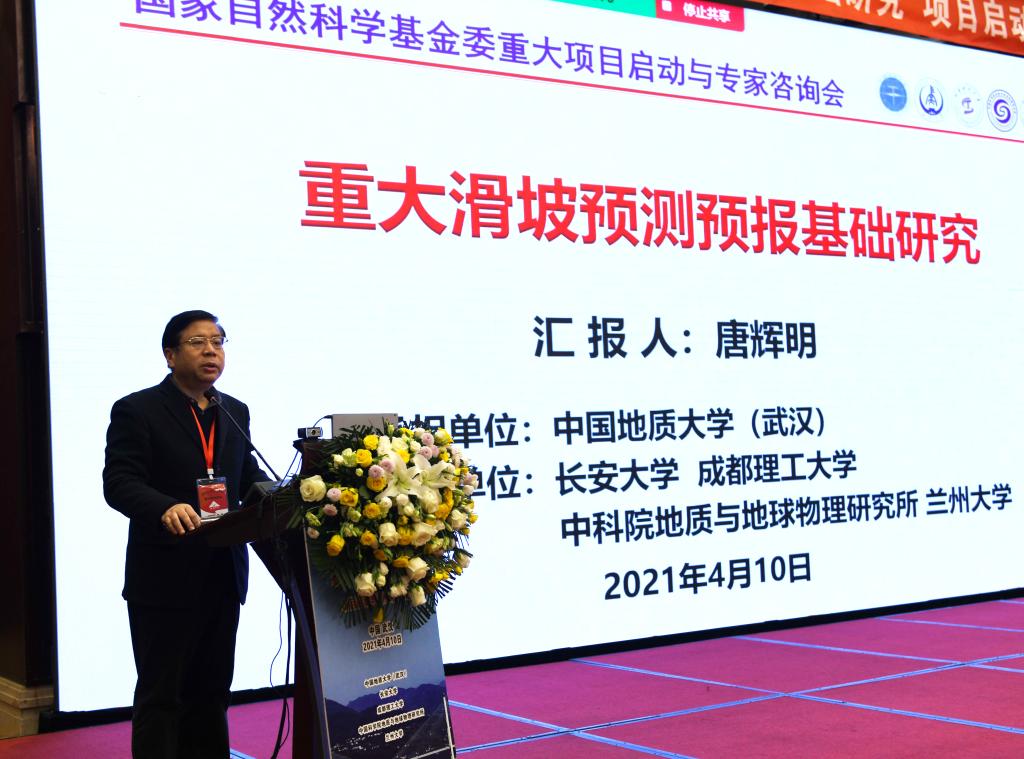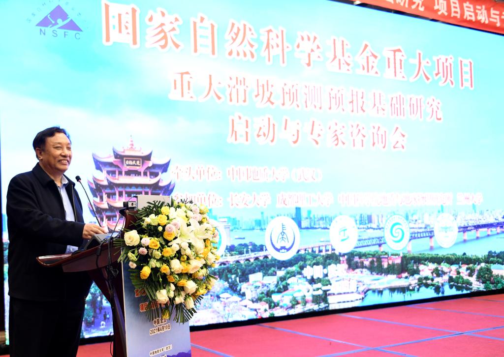 (通讯员:祝国强)4月10日,由我校唐辉明教授主持,长安大学、成都理工大学、中国科学院地质与地球物理研究所、兰州大学共同承担的国家自然科学基金重大项目“重大滑坡预测预报基础研究”启动与专家咨询会在武汉召开。国家自然科学基金委副主任侯增谦院士、地球科学部于晟副主任、刘羽处长,项目咨询专家组中国科学院彭建兵院士、龚健雅院士、孙和平院士等专家,校党委书记黄晓玫,校长助理蒋少涌,时博在线院长焦玉勇,科学技术发展院副院长黄祥嘉,项目和课题承担单位负责人及项目组成员等110余人参加会议。