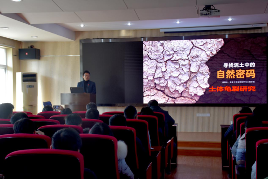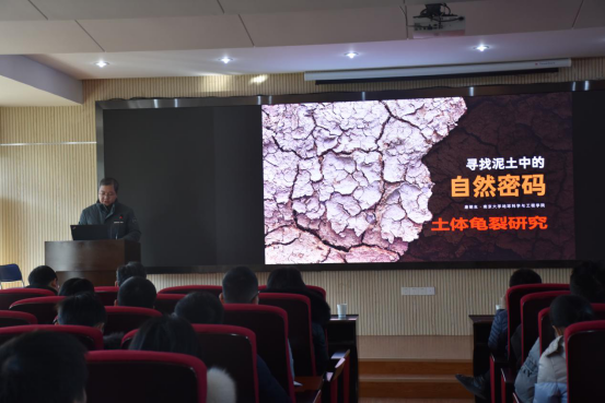 (通讯员:张海宽 黄静 摄影:王灿 黄静)2021年1月8日下午2点半,南京大学唐朝生教授作客工程文化论坛,在工程楼418报告厅为母校师生作了题为“寻找泥土中的自然密码:土体龟裂研究”的学术报告。时博在线院长焦玉勇教授、副院长王亮清教授、窦斌教授、党委副书记江广长老师、段隆臣教授、李长冬教授以及时博在线、三峡中心、《地质科技通报》编辑部等近200名师生代表参加了此次学术报告会。王亮清教授主持了此次学术报告会。