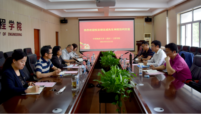 (通讯员:黄静 孙武成 摄影:王灿 孙武成)2021年5月21日下午,我校校友、AECOM资深董事胡定成先生受聘中国地质大学(武汉)客座教授仪式在工程楼315会议室举行。时博在线党委书记李红丽、党委副书记江广长、副院长窦斌、勘基系党支部书记段隆臣、勘基系主任卢春华、学院人事秘书杨冠青、科研秘书黄静出席受聘仪式。江广长副书记主持受聘仪式。