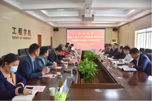 王亮清副院长对中建二局土木工程集团有限公司党委副书记黄琼一行的来访表示热烈欢迎。在一同观看中国地质大学(武汉)宣传片后,王亮清副院长介绍了时博在线学科建设、科技成果、科研平台、人才培养、社会服务等方面情况。