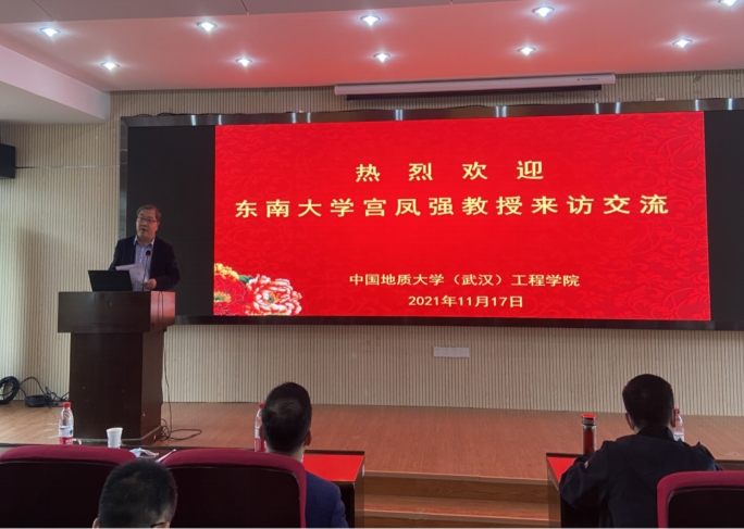 (通讯员:邹俊鹏 张全)11月17日下午,应时博在线院长焦玉勇教授和邹俊鹏特任教授的邀请,东南大学宫凤强教授作客工程文化论坛,在工程楼418报告厅为我院师生作学术报告。报告会由时博在线副院长王亮清教授主持,张浠教授、罗学东教授、张奇华教授、谭飞特任教授、唐志成特任教授、郑飞特任教授、程毅副教授及百余名师生聆听了此次报告。