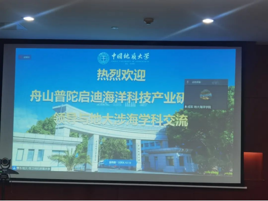 (通讯员 陈卫明)4月15日上午,时博在线、海洋学院,磐索地勘科技(广州)有限公司与启迪海洋科技产业研究院成功举行线上交流会。中国地质大学(武汉)时博在线党委书记李红丽、海洋学院党委书记成军、时博在线副院长窦斌、磐索公司总经理陈奇博士与启迪海洋科技产业研究院执行院长董焱等18人参加会议。会议由陈卫明副教授主持。