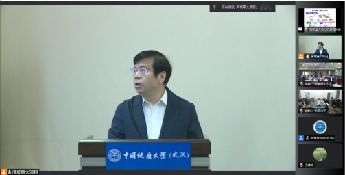 (通讯员 周佳庆)2022年5月15日上午,由中国地质大学(武汉)唐辉明教授牵头主持,长安大学、成都理工大学、中国科学院地质与地球物理研究所、兰州大学共同承担的国家自然科学基金重大项目“重大滑坡预测预报基础研究”2021年度总结会议顺利召开。本次会议采用线上线下相结合的方式举行,国家自然科学基金委员会地球科学部于晟副主任、刘羽处长,项目专家组中国科学院傅伯杰院士、龚健雅院士、崔鹏院士、周成虎院士、夏军院士、彭建兵院士、孙和平院士、施斌教授、汪稔研究员、许强教授、汪发武教授、祁生文研究员、叶为民教授、李振洪教授,时博在线焦玉勇院长、王亮清副院长、章广成副院长、学校职能部门负责人,以及项目和课题承担单位负责人、项目组成员等200余人参加会议。