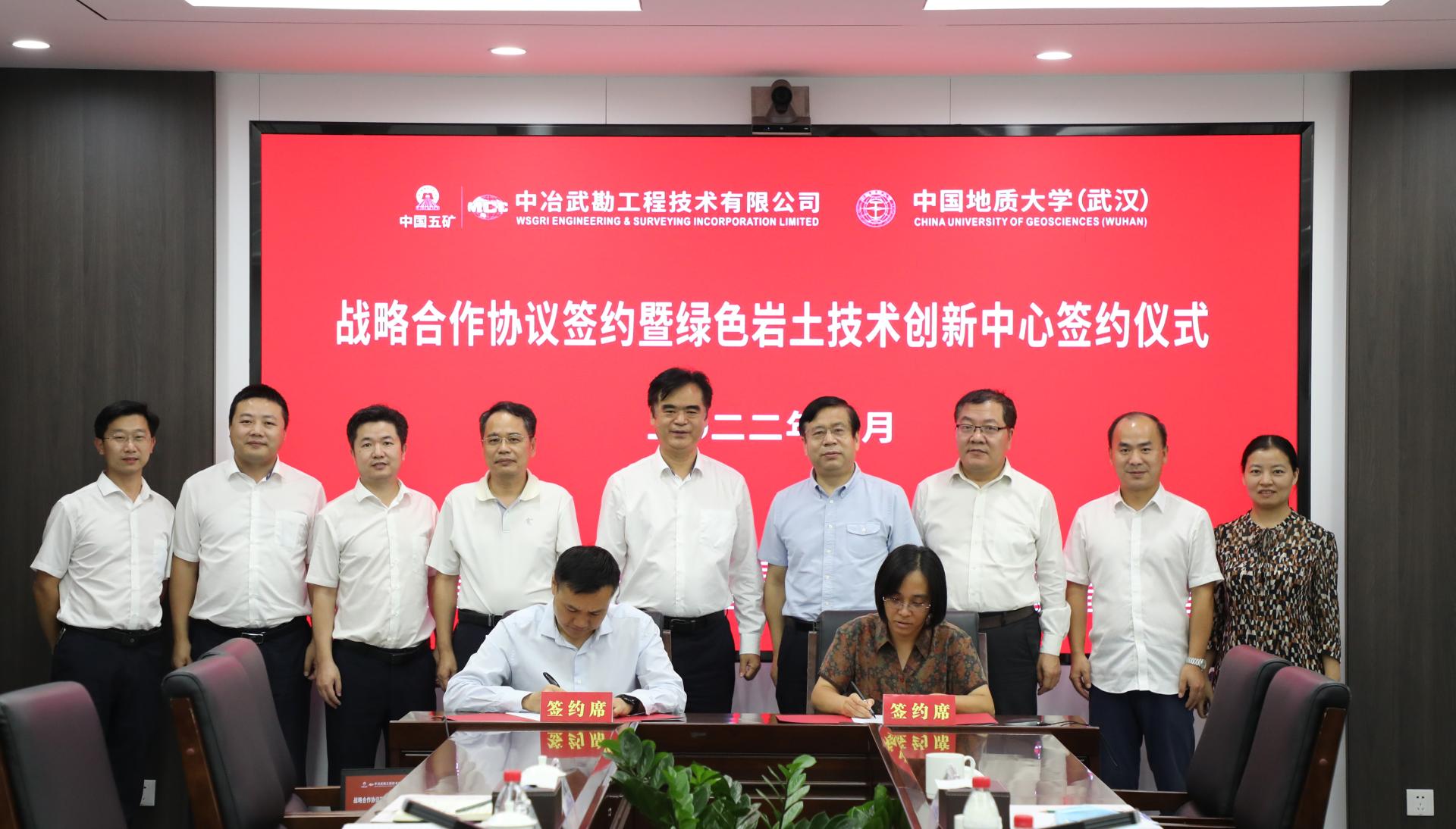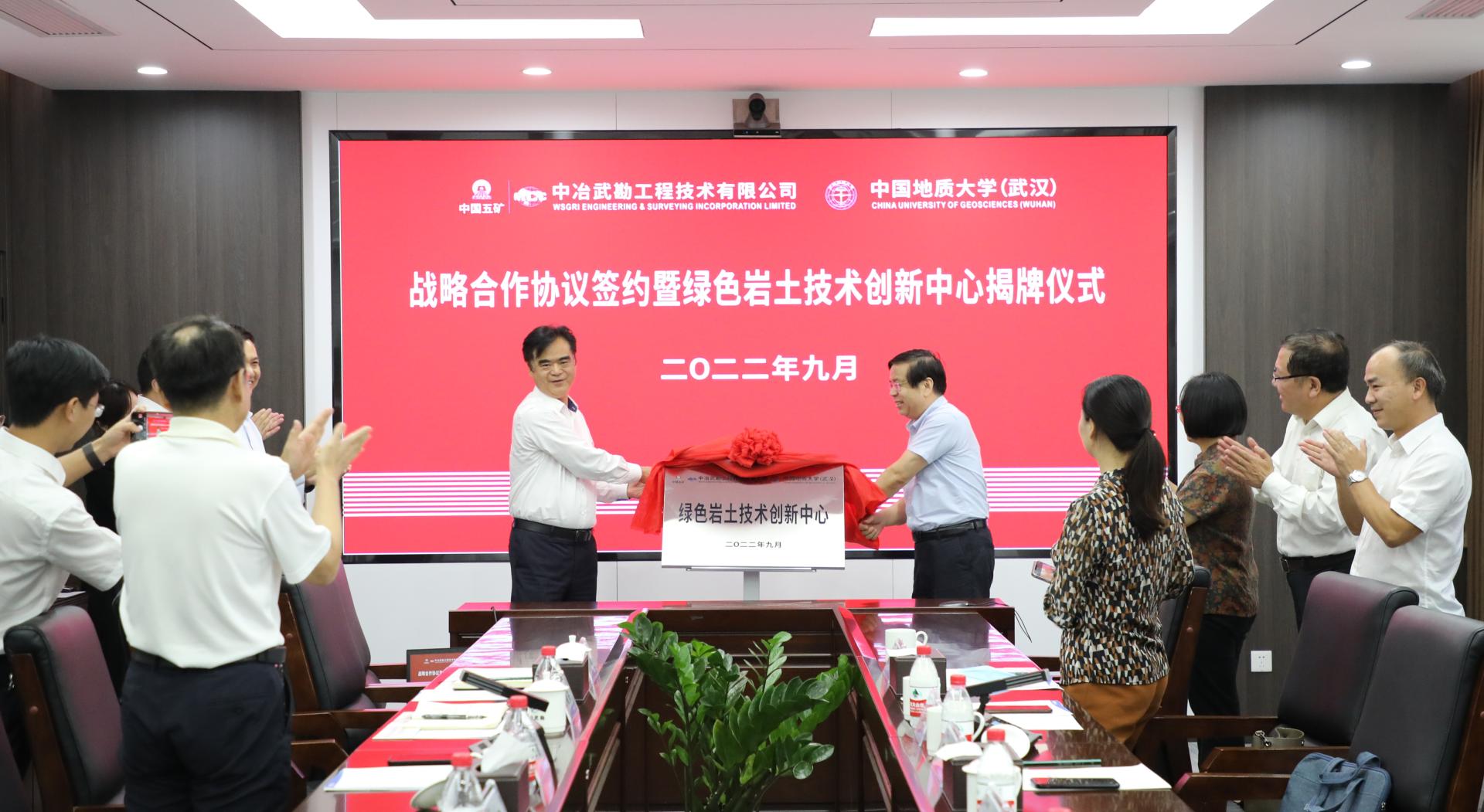 9月29日,时博在线与中冶武勘工程技术有限公司签署战略合作框架协议,并联合成立“绿色岩土技术创新中心”,深入推进产学研发展。时博在线党委书记李红丽和中冶武勘副总经理、总工程师江永建代表双方签署战略合作协议。中国地质大学(武汉)党委副书记唐辉明,中冶武勘党委书记、董事长臧中海见证签约并共同为“绿色岩土技术创新中心”揭牌。双方将把科教资源优势和工程技术成果转化优势紧密结合,在产学研用协同创新、人才培养等方面进行全方位的合作。