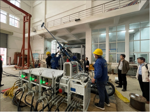 3月6日下午至3月8日上午,四川诺克钻探机械有限公司技术骨干和我院青年教师携手在钻探大厅共同组装完成了Rock-800E钻机。在四川诺克钻探机械有限公司技术总工蔡平基、副总工陈银的指导下,我院青年教师均完成了上机操作培训。