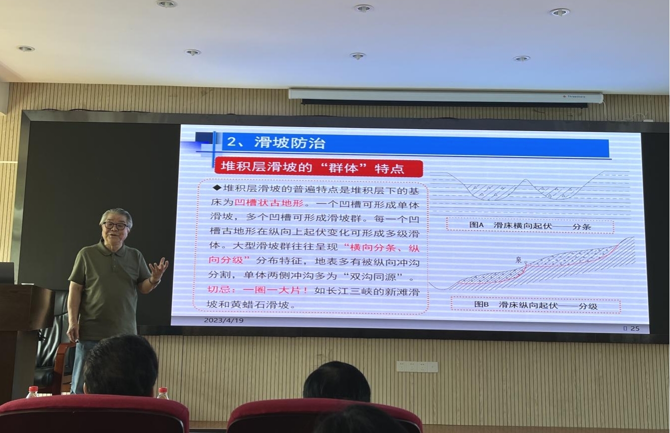 活动还邀请了中冶武勘工程技术有限公司副总经理占仲国教授级高级工程师、武汉市勘察设计有限公司副总经理、总工程师官善友教授级高级工程师、中国一冶集团有限公司副总工程师王平教授级高级工程师、湖北建鄂勘察设计审查咨询有限公司向艳正高职高级工程师、中南勘察设计院集团有限公司副总工程师马郧正高职高级工程师、长江勘测规划设计研究有限责任公司所长助理徐复兴正高职高级工程师、中国科学院武汉岩土力学研究所江权研究员、武汉理工大学芮瑞教授、武汉华太岩土工程有限公司吴西臣正高职高级工程师等莅临现场。时博在线唐辉明教授、李红丽书记、章广成教授、徐光黎教授、贾洪彪教授、葛云峰副教授、周佳庆特任教授等150多名师生在现场聆听了报告。