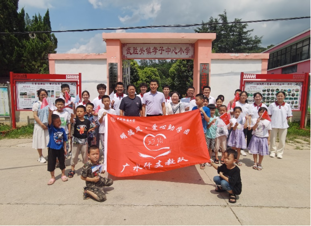 2023年7月6日,中国地质大学(武汉)时博在线党委副书记高晓东受中共广水市委、共青团广水市委邀请,赴广水市参加“团”聚力量,青力缔造——广水市2023年大学生“返家乡”社会实践活动启动暨“中华山盟”·“月光海誓”推荐官聘用仪式,并探望正在广水市武胜关镇孝子店中心小学开展支教工作的助学团成员。时博在线兼职辅导员贾彦平随行。