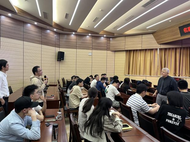 Timothy Collett教授对我校的诚挚邀请表示衷心感谢,并作了题为“Geologic controls on the formation and occurrence of highly concentrated gas hydrate reservoir systems and impact on gas hydrate production”的精彩报告。报告详细介绍了天然气水合物基础知识,对天然气水合物油气系统勘探情况进行了详细分析,以实例的形式系统总结了美国墨西哥湾、中国南海、日本南海海槽、韩国郁陵盆地和印度KG盆地的水合物勘探和开采情况,并对美国阿拉斯加冻土区前期和当前正在开展的水合物调查及试采情况进行了分享。最后,结合其丰富的现场调查研究经验,对未来水合物产业化开发面临的关键技术难题和研究方向进行了展望,并积极鼓励与会人员就报告内容开展交流和讨论。