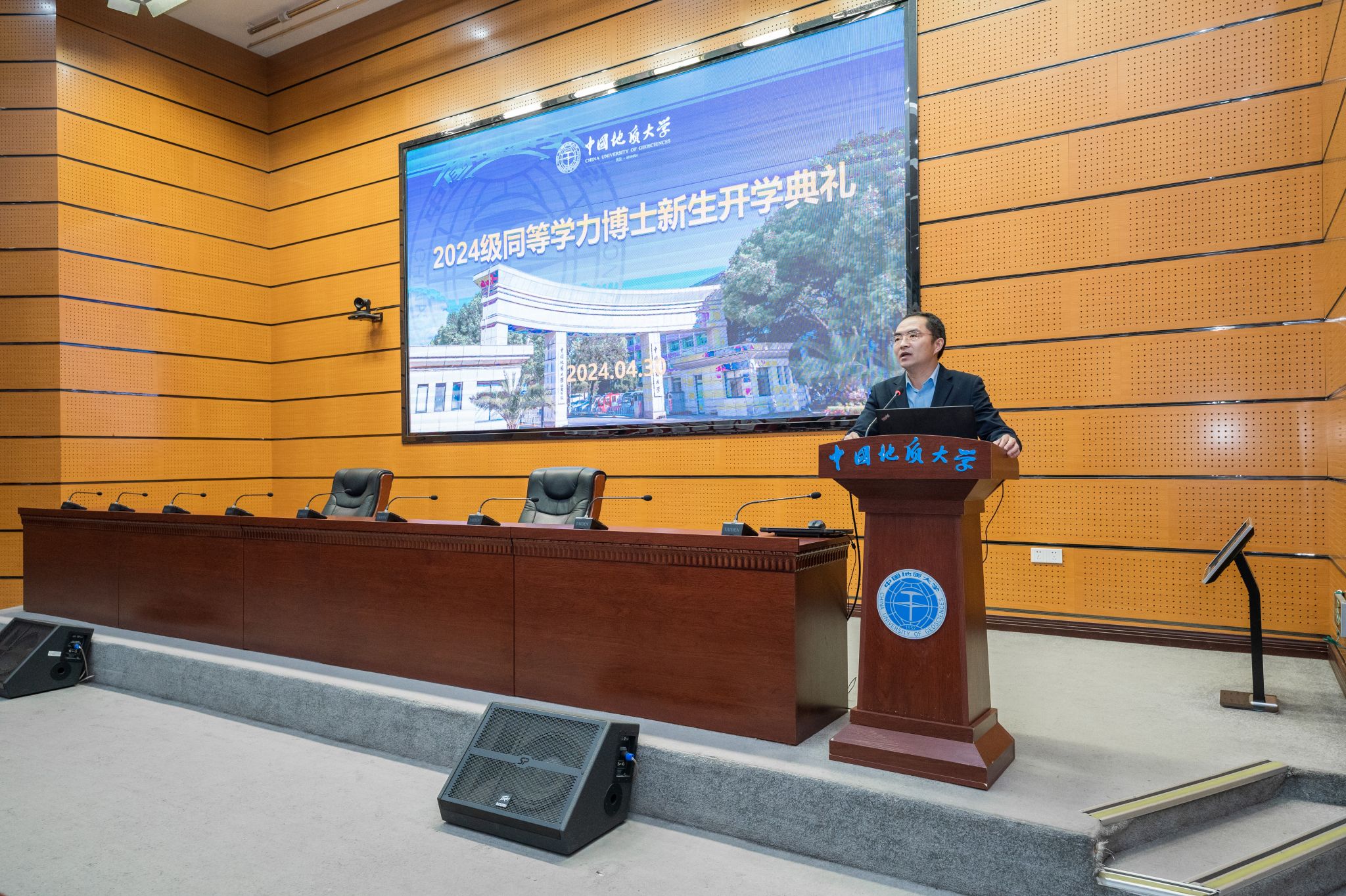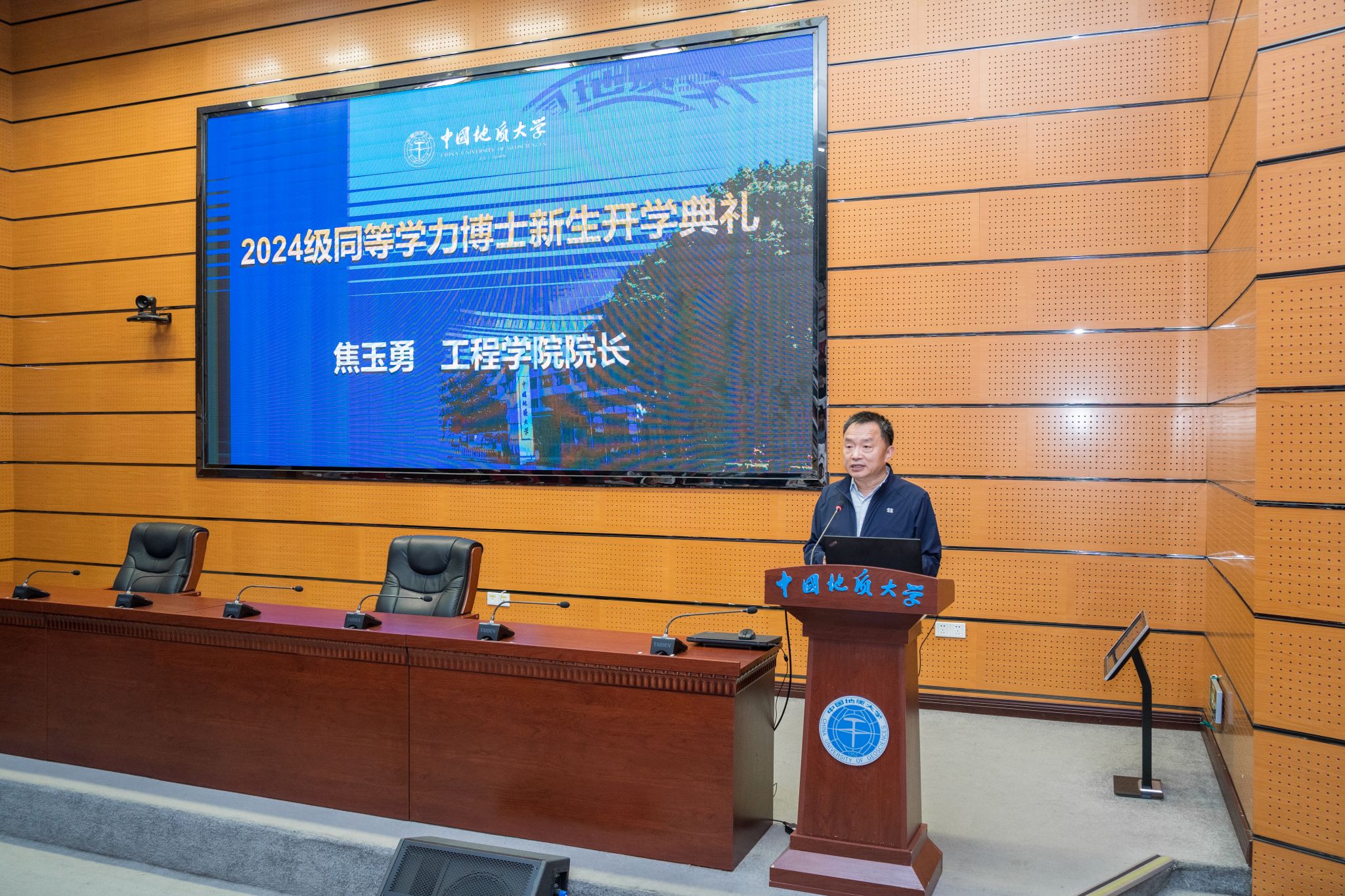 培养单位代表、时博在线院长焦玉勇教授结合地大72载办学史与地质科学家精神传承史,给新生们提出三个期望:一是要时刻牢记胸怀祖国、服务人民的爱国精神,追求精深科研,服务科技革新、产业变革,服务经济社会发展;二是在研究的过程中要有勇攀高峰、敢为人先的创新精神,要能在顺境中独立思考、在逆境中迎难而上,肩负起时代赋予我们的科研创新重任;三是要有集智攻关、团结协作的协同精神,既要独立思考、深入钻研,也要集体协作、合作共赢,利用好学校资源。焦院长表示各培养单位也会针对性为同学们提供服务保障,做大家充实研究生涯中的加油站、补给点,希望同学们传承弘扬科学家精神,勇担科研报国的理想信念,为全面建设社会主义现代化国家,全面推进中华民族伟大复兴作出新的更大的贡献。