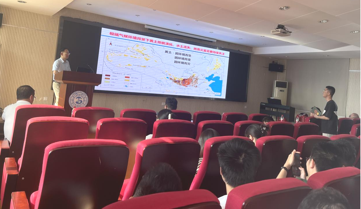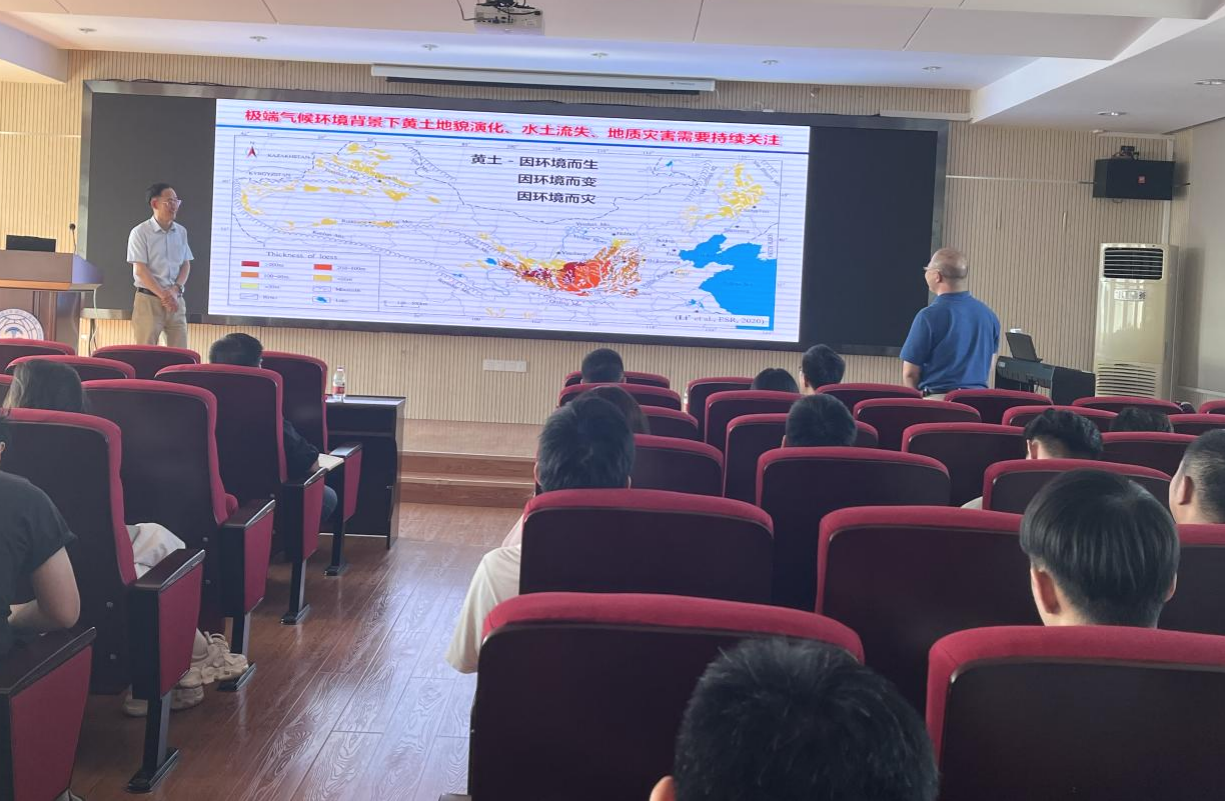 李彦荣教授作了题为“黄土斜坡热响应及其驱动的倾倒型破坏”的学术报告。他首先介绍了全球黄土地层与黄土地貌情况。我国黄土覆盖全国陆地面积约7%,孕育着近2亿人口,是我国农业、工业、畜牧业的核心地带。然而黄土多孔疏松、弱胶结、竖向节理发育,黄土区沟壑纵横、地形破碎、地质环境脆弱,加之黄土高原多见短时强降雨,一方面导致水土流失严重,另一方面致使地质灾害频发,严重影响着人民的生命财产安全和人地协调发展。基于此,李彦荣教授从黄土斜坡温度响应、黄土斜坡的倾倒破坏和温度响应的物质基础三方面分享了自己的研究方向和最新研究成果。