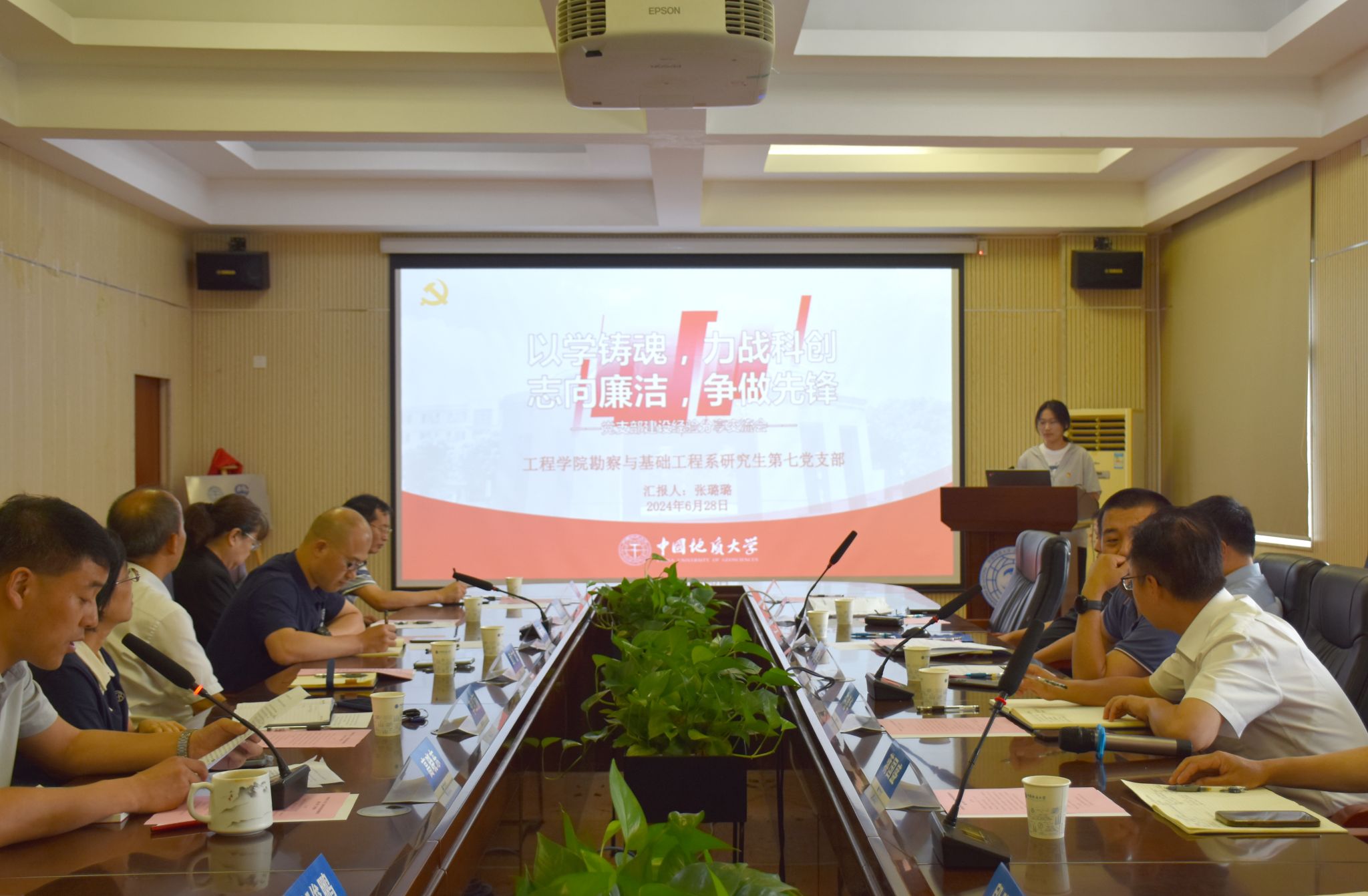 勘察与基础工程系研究生第七党支部书记张璐璐,系统汇报“导学团队+支部建设”的工作思路与积极成效,展示了研究生党支部如何紧密依托时博在线勘察与基础工程系教师党支部的资源优势,不断探索和创新工作模式。党支部以“思想固邦”为引领,以实现“科技固邦”的目标,以“奉献固邦”作为自己的行动准则。这一系列举措不仅增强了党支部的凝聚力和战斗力,也为学院和社会的发展贡献了积极力量。