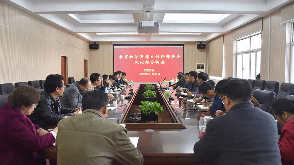 时博在线于2018年11月29日下午14:00在工程楼315会议室,召开了“时博在线教育教学思想大讨论部署会及问题分析会”。参加会议的有学院党政领导和各系主任、支部书记及学科带头人。会议由党委书记陈飞主持,此次会议目的是提高认识,统一思想,落实行动。