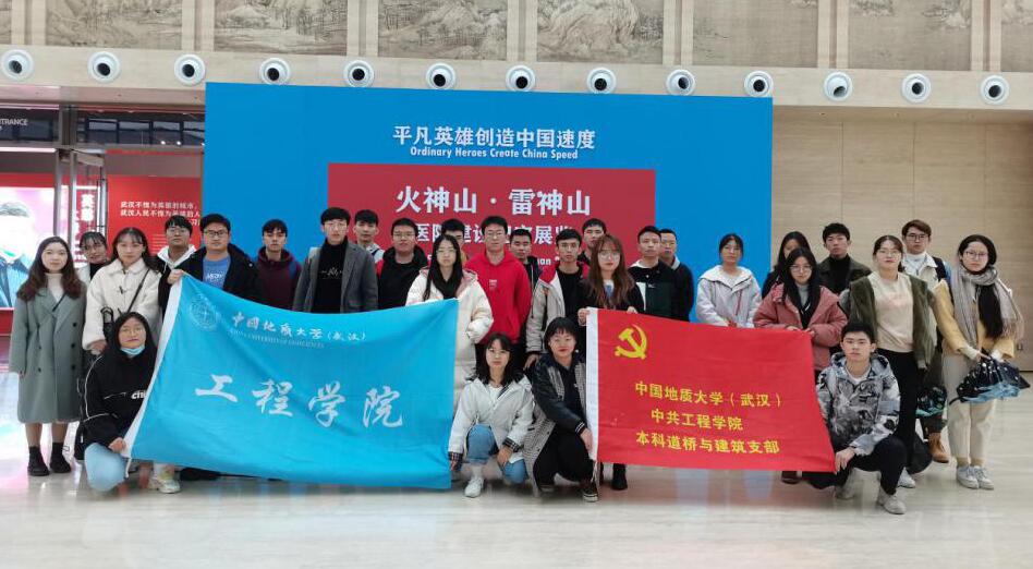 时博在线道桥与建筑专业本科生党支部参观“两山”医院建造展览