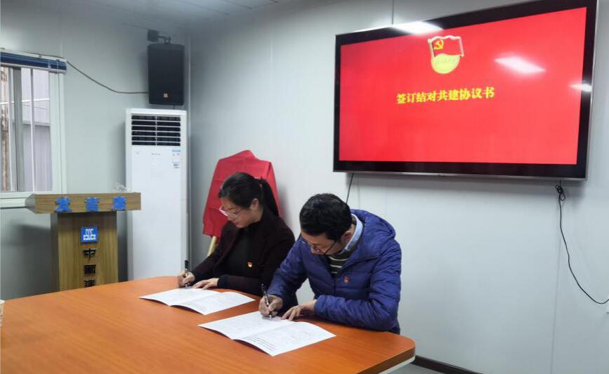接着全体成员重温入党誓词,机关党支部书记陈婷华与时博在线就业专职辅导员王俊签订结对共建协议书,中建三局一公司中南公司副总经理梁劲松与时博在线党委副书记江广长进行揭牌仪式。