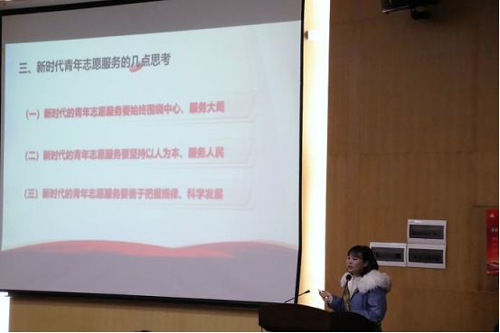 最后,校团委副书记郭小玉作总结讲话。她从国家志愿服务发展、高校志愿服务格局和参加志愿服务项目等多个维度为大家讲解志愿工作和志愿精神。她表示,时博在线举办的“爱党爱校•感恩励志”主题教育活动具有很好的社会公益性和学生感召力,希望全校大学生能从志愿服务中汲取奋进的力量,在学好专业知识之余关注社会弱势群体、参加志愿服务工作,从受助到自助、从被助到助人,真正将志愿服务精神书写在大地上、落实到行动中,为践行“为党育人、为国育才”的教育初心和使命中做出应有贡献。