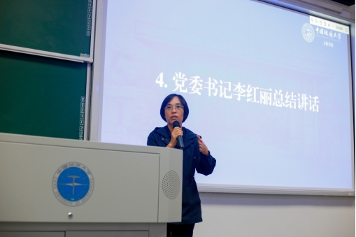 李红丽总结讲话。她指出,学风建设是高校教育教学工作的核心内容,是学院推进人才培养质量提升的应有之举,本次推进“优良学风示范班”创建工作,正是落实学校“十六字”人才培养方针和学院“三观三型”人才培养目标的具体举措。全体同学要做到:一是提高思想认识,凝聚共建合力。班级是开展学风建设的基本单元和重要阵地,良好的班级学风是促进同学成才的基本保障,每一位同学都是受益者。各班级要高度重视“优良学风示范班”的创建工作,提高思想认识,并通过日常班会、主题团日等形式积极宣传,凝聚共识,形成合力。二是对照创建标准,认真贯彻执行。学风建设是一项系统工程,要凝聚班主任、助理班主任、辅导员等各方育人力量,扎实开展《中国地质大学(武汉)时博在线“优良学风示范班”创建评选办法》的学习,对标创建量化评估指标,结合班级自身情况,把创建目标定好、分步计划做好、务实举措想好、特色活动办好,推进学风建设走深走实。三是做好榜样示范,共创优良学风。班团委干部是班级的排头兵,要以身作则、率先垂范,积极担当优良学风的践行者。同时,班团委干部也要当好学风建设的组织者,将班团组织建设工作统一到优良学生示范班级建设工作当中,充分调动班级同学的积极性、主动性,明确分工、通力协作,共创优良学风。